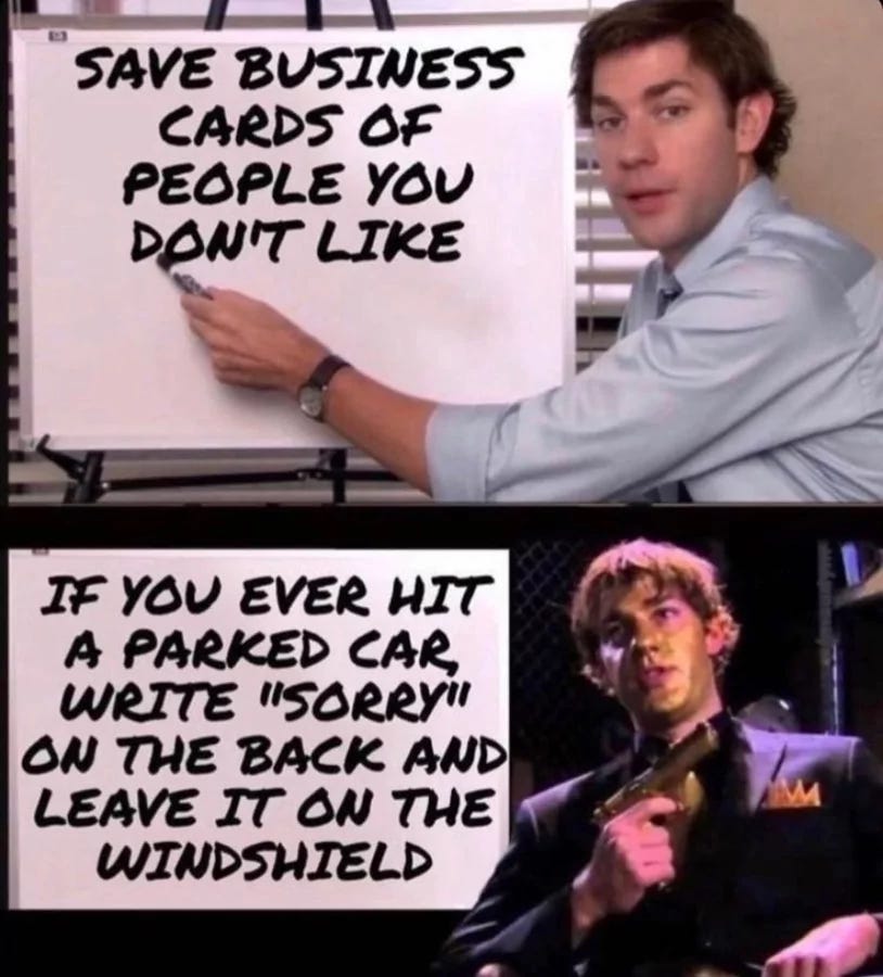 I once worked for a guy who could be a candidate for a Bad Bosses episode. If I had any of his cards, I would be tempted to bump somebody's car just for the opportunity to use it!